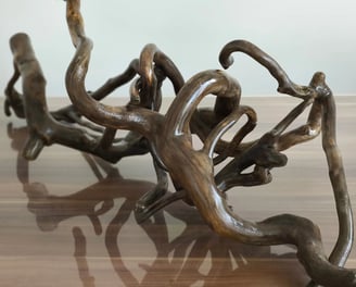 Unsere Holzarbeiten beginnen mit sorgfältig ausgewählten Baumästen, die wir von ihrer Rinde befreien, aufwendig schleifen und lackieren. Die fertigen Stücke, sei es als Dekoration mit Sockel oder als individuelle Steh-/ Hängelampe, verbinden rustikale Natürlichkeit mit moderner Eleganz.